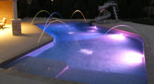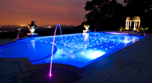 Spectacular backyard water entertainment with dazzling nighttime lighting effects.
